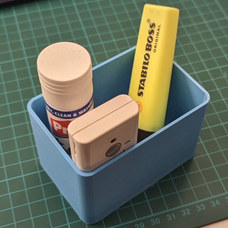 Descrição: Compartimento de Cantos Redondos modelo 002 para a série eXSta. Compartimento para objectos como marcadores, tubos de cola, ou outros objectos de tamanho semelhante.